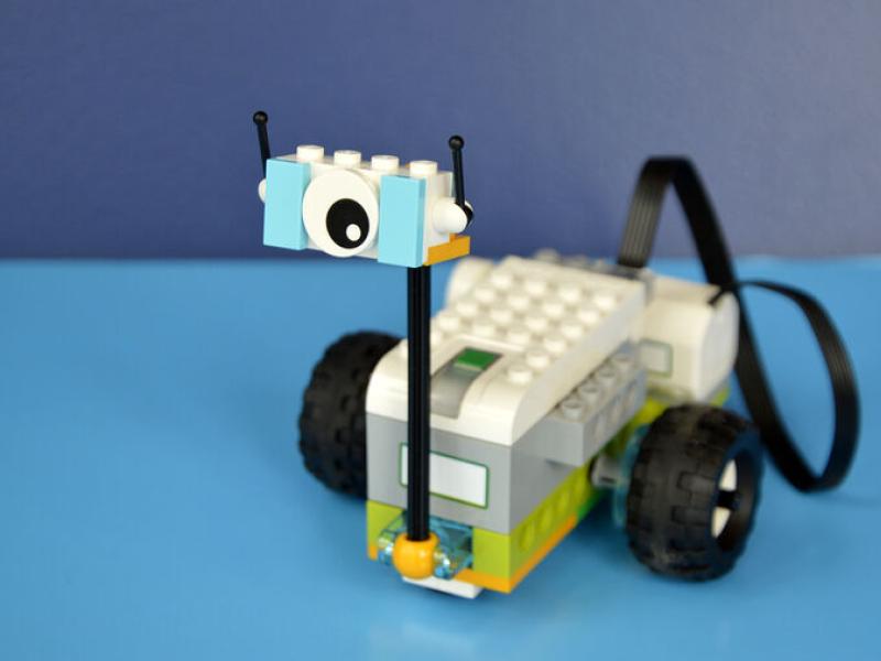 Vi bygger robotter af LEGO-sættet LEGO WeDo, som vi her på biblioteket bruger til undervisning af skoleklasser i hverdagene. De fine robotter kan derfor ikke tages med hjem efterfølgende, men bor på biblioteket.