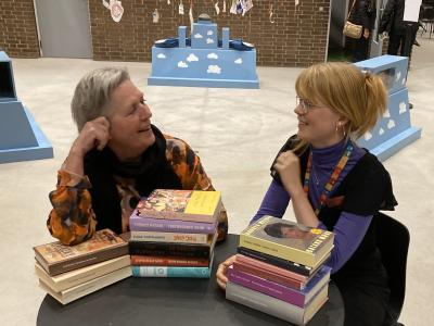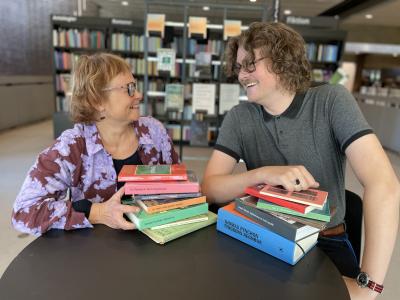 Litteraturformidler Olivia Nedergaard og biblioteksformidler Marianne Damm anbefalede en masse forskellige blandede bogbolsjer til mandagssalon i november07. november 2024